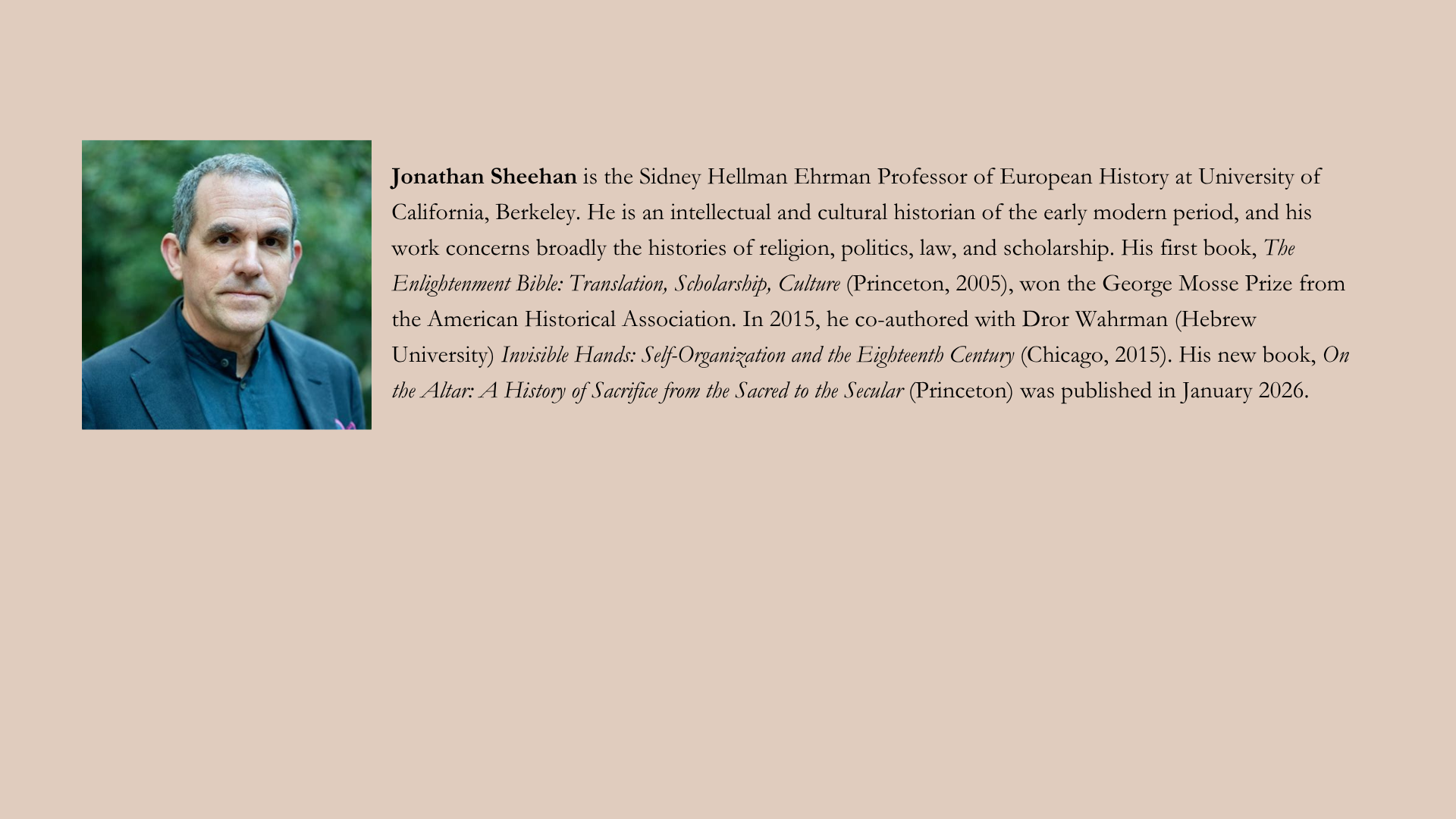 Join CEMS for the launch of Prof. Jonathan Sheehan’s (UC Berkeley) latest book, On the Altar: A History of Sacrifice from the Sacred to the Secular (Princeton University Press, 2026). On the Altar offers a new examination of sacrifice. It is a history of the Christian and secular imagination, from Europe to the Americas.